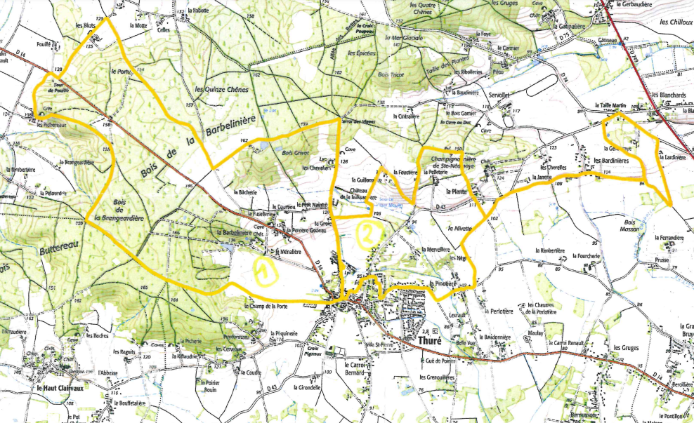 La Commune de Thuré vous propose de nombreux circuits de randonnées qui longent beaucoup d'anciennes demeures encore habitées. Vous pouvez aussi découvrir une quarantaine de porches. Les principaux étant sur le parcours "de porche en porche" (descriptif en lien ci-dessous).
